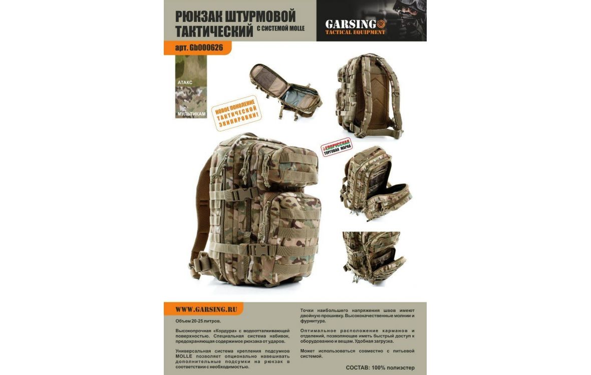 Производитель может вносить изменения в комплектацию, цвет, конструкцию и/или программное обеспечение изделия без предварительного уведомления пользователей. Купить Рюкзак штурмовой тактический Garsing GSG-30 по цене 3 094 ₽ в охотничьем магазине МОСОХОТА Оплачивайте покупки онлайн, банковской картой или наложенным платежом при получении.