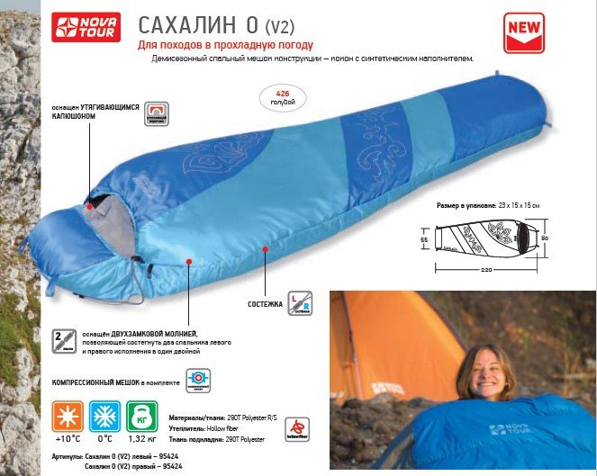 - УтеплительНазвание или тип утеплителя, который находится внутри спального мешка и отвечает за сохранение тепла, выделяемого человеком во время сна. Hollow fiber, 2слоя х100г/м2
