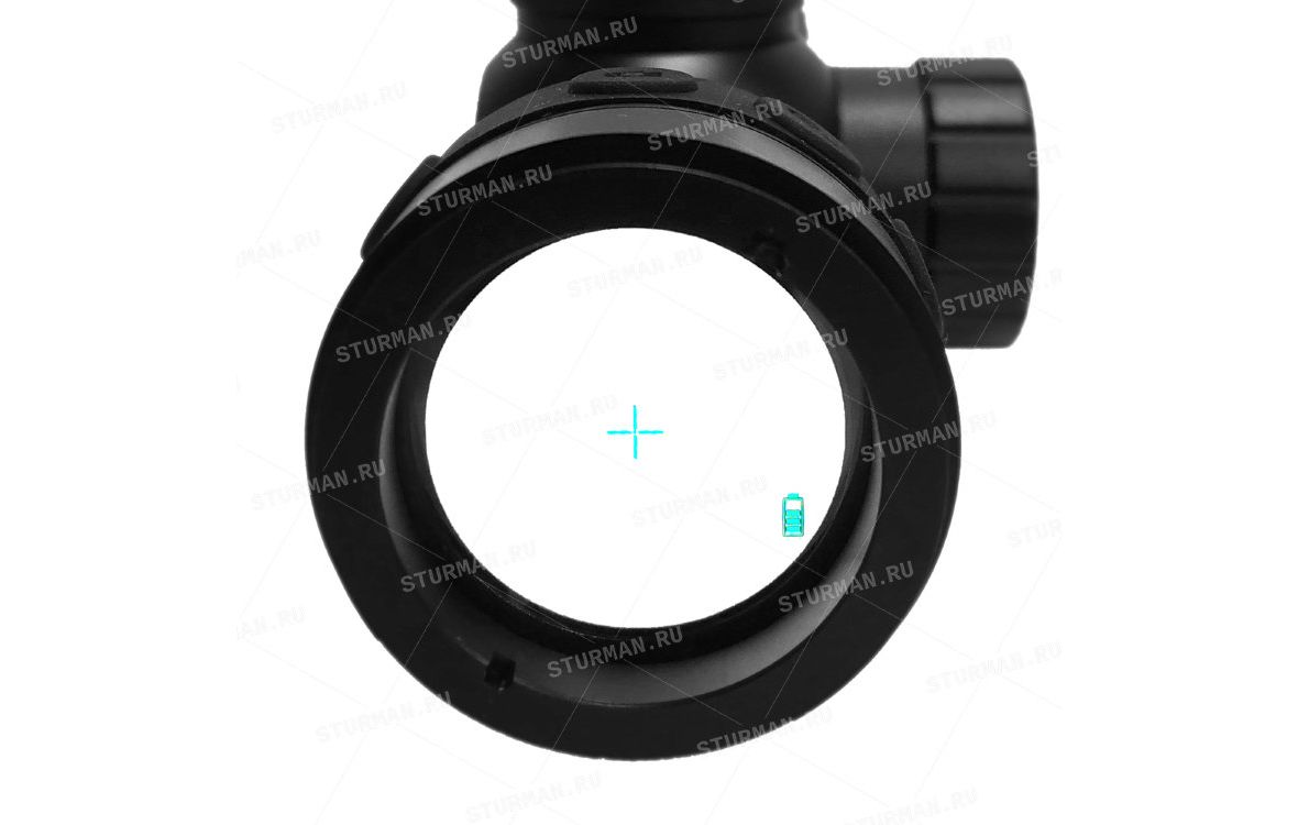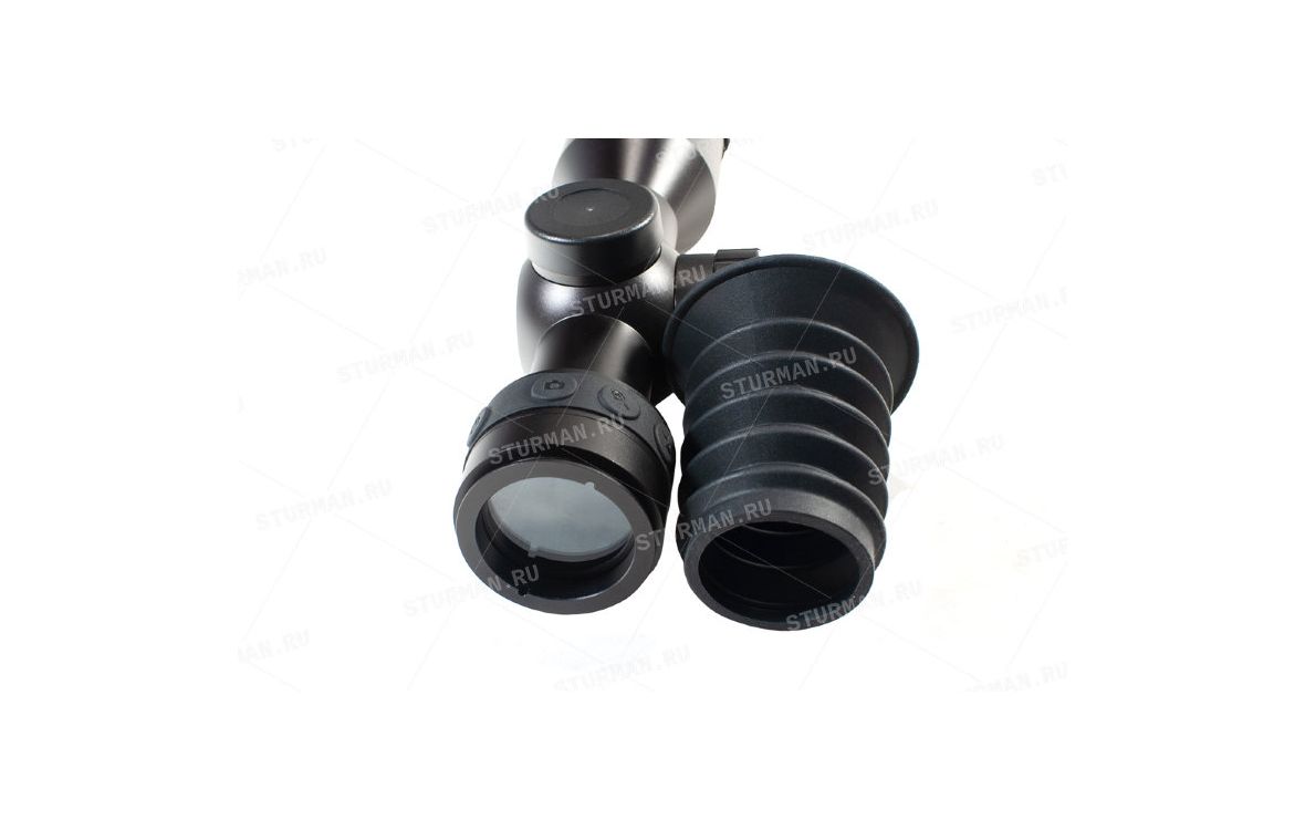 Цветной AMOLED дисплей 390x390 непосредственно служит окуляром прицела, на который выводится изображение с тепловизионной матрицы, прицельная метка, уровень заряда батареи и другая служебная информация из меню. Удобная для наблюдений дистанция удаления глаза от дисплея — от 25 сантиметров и более, в зависимости от особенностей зрения стрелка. Наблюдать за изображением можно двумя открытыми глазами. Диаметр окуляра-экрана 30 мм. Резиновый наглазник служит для маскировки свечения экрана дисплея в ночных условиях и в качестве бленды в дневных. Дисплей даёт визуально круглую картинку — как у дневного прицела, а кнопки управления удобно расположены на окуляре и всегда остаются в поле зрения стрелка. В настройках можно менять палитру, настраивать инверсию «горячий чёрный» / «горячий белый» / «горячий красный», и удалять возникающие битые пиксели.