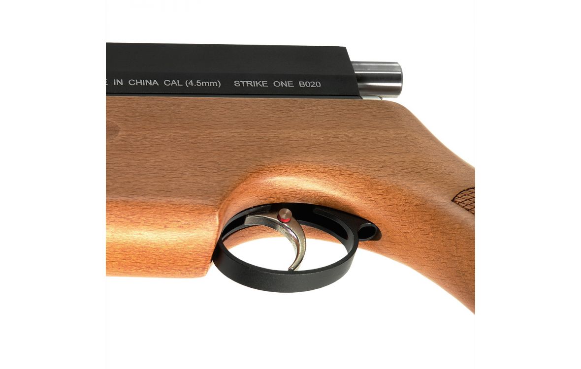 Ствол в PCP винтовке Strike One B020 сделан из стали, длина ствола составляет 535 мм. Нарезы внутри ствола придают снаряду вращательное движение, благодаря этому достигается стабильная траектория полета, высокая дальность и кучность стрельбы. Винтовка оснащается интегрированным дульным тормозом, крепящимся на стволе при помощи резьбы, который служит для снижения влияния турбулентного потока воздуха на пульку в момент покидания ею канала ствола. Ручной предохранитель расположен на спусковом крючке и во включенном состоянии препятствует его движению.