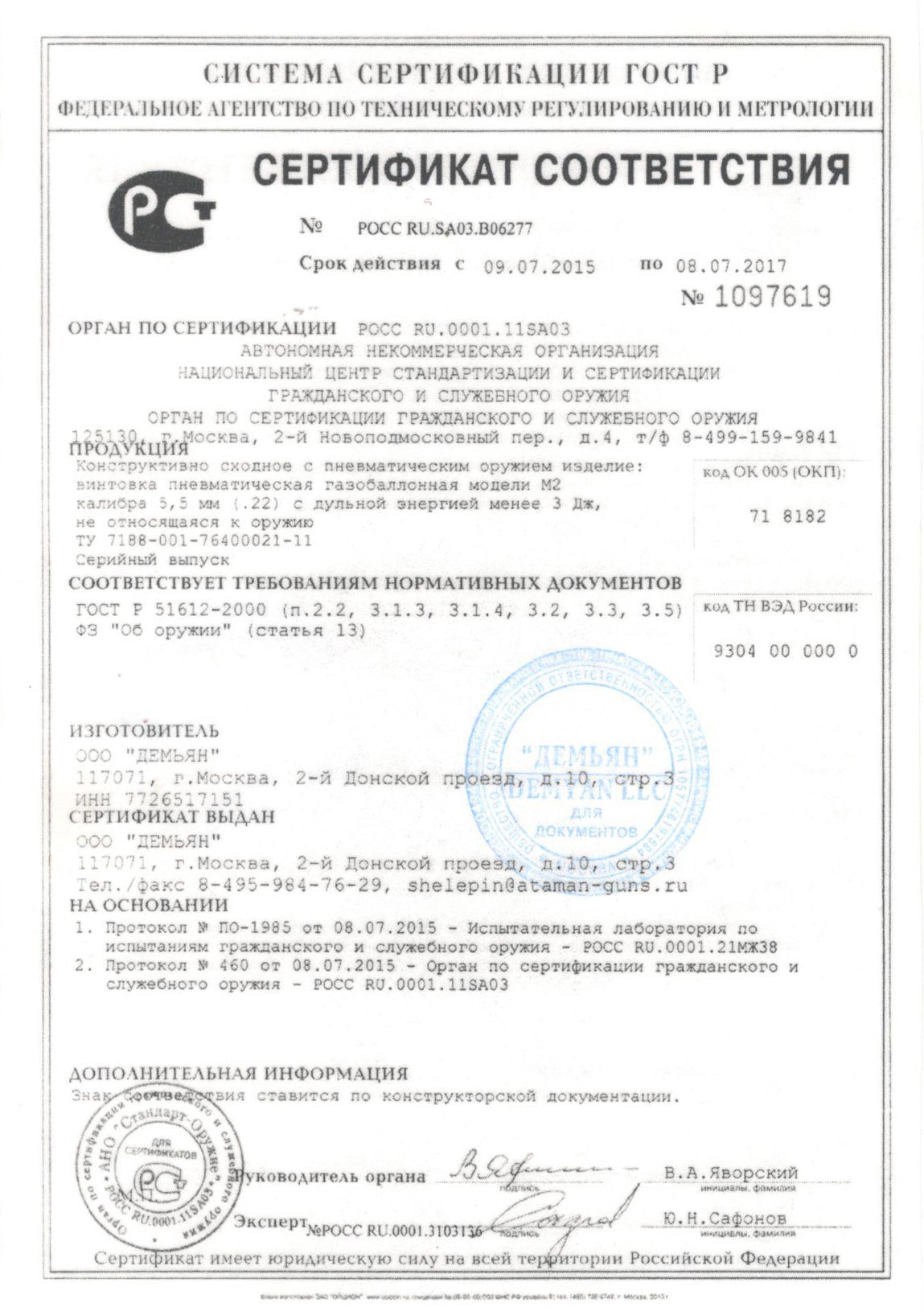 Винтовка пневматическая Ataman M2R Эксклюзив относится к моделям классического типа. Это высокоточная охотничья пневматическая винтовка, способная обеспечить точный выстрел, и стабильную серию выстрелов практически при любом давлении в баллоне. Модель имеет современный дизайн. Винтовка идеально сбалансирована, ложе удобно ложится в руки. Он очень удобный во время стрельбы. Тип приклада - «Монте-Карло». Приклад и ложе выполнены из дерева (сопель). Такая винтовка не боится перепадов температуры, не боится влаги. В передней части воздушного баллона имеется заправочный порт с клапаном и манометр для измерения давления. Эта конструкция обладает высокой отказоустойчивостью и надежностью. В воздушном баллоне имеется редуктор, оригинальной конструкции, который создает постоянное давление в стволе винтовки при любом давлении в баллоне с воздухом. Это дает возможность производить большое количество выстрелов (серию) с равными параметрами, в отличие от стандартных прямоточных пневматических винтовок. Для обеспечения безопасной работы предусмотрено наличие механического предохранителя с блокировкой шептала.