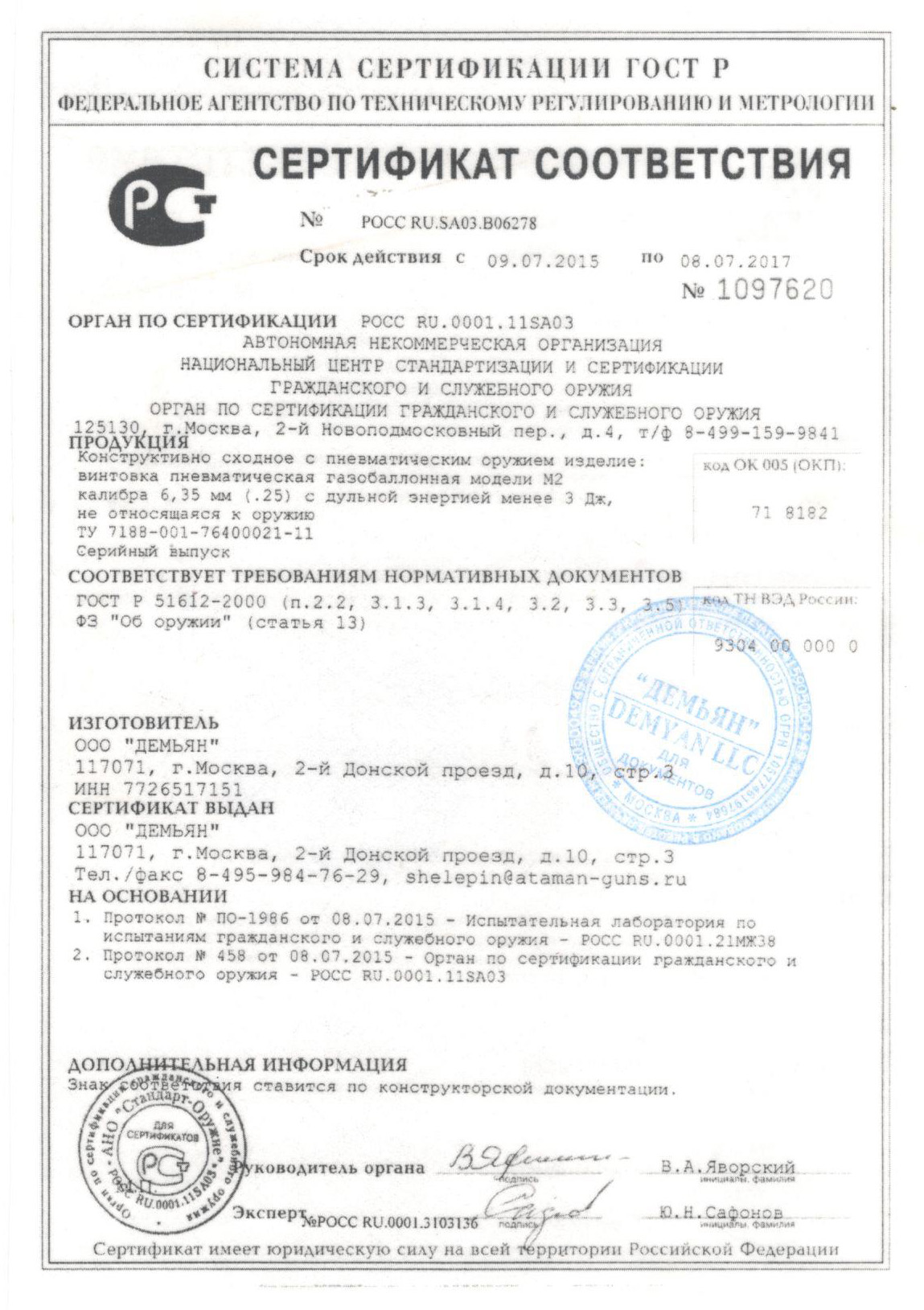 Ataman M2R Эксклюзив 6,35 мм – производительная винтовка с элегантным дизайном и эргономичной формой приклада, благодаря которой при ее использовании стрелок не чувствует какого-либо дискомфорта и может максимально продемонстрировать свои навыки стрельбы. Редуктор воздушного резервуара обеспечивает постоянный уровень давления в стволе, что делает возможным совершение длинных серий выстрелов с одинаковой точностью и хорошей кучностью. Без оптического прицела винтовка весит всего 3.3 кг, что относительно немного для ее габаритов: 1100x150x50 мм, где первое число – общая длина Ataman M2R Эксклюзив 6,35 мм, второе – высота винтовки, третье – ее ширина. Длина ствола данного оружия составляет 520 мм. Рабочее давление баллона со сжатым воздухом равняется 300 атм., количество оставшегося воздуха вы всегда можете узнать благодаря интегрированному монометру. Без дозаправки баллона из винтовки можно сделать от 60 до 200 выстрелов, их точное количество зависит от настроек и калибра пуль. Ataman M2R Эксклюзив 6,35 мм – однозарядная винтовка, которая перезаряжается при помощи механизма болтового взведения. Опционально на нее устанавливается магазин барабанного типа емкостью 8 пуль. Для обеспечения безопасности винтовка снабжена принудительным неавтоматическим предохранителем с блокировкой шептал. Для установки оптических приборов на ствольной коробке имеется стандартная планка Пикатинни. Получение лицензии и разрешения на хранение и использования оружия для покупки данной винтовки не требуется.