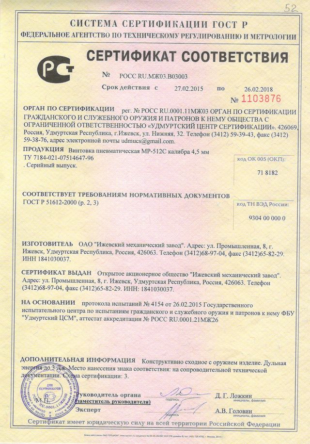 Пневматическая винтовка МР-512С-00 4,5 мм