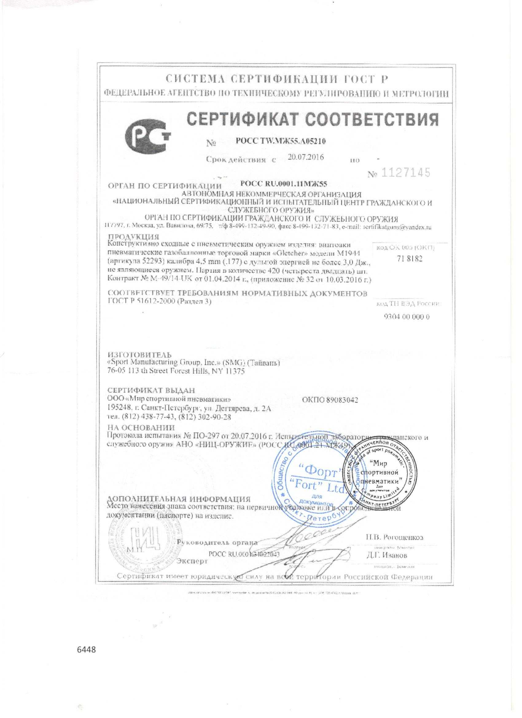 - Тип ствола гладкий