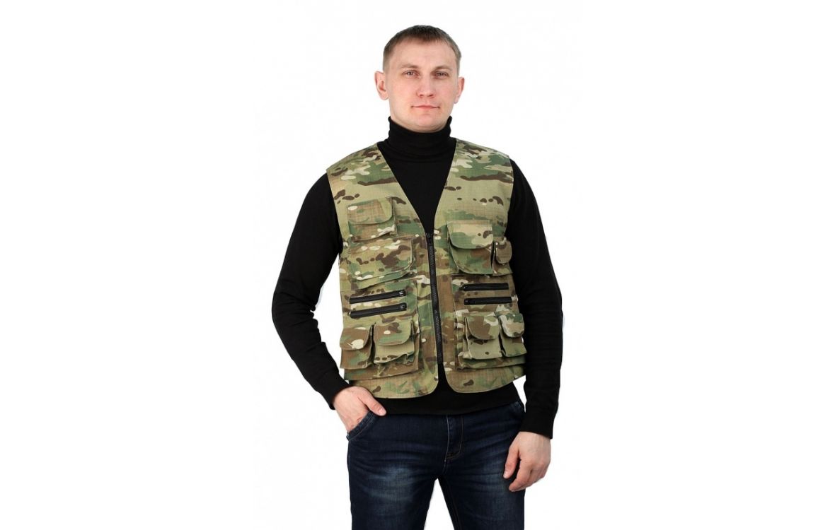 Купить Жилет мужской "Профи"рип-стоп "мультикам" по цене 985 ₽ в охотничьем магазине МОСОХОТА