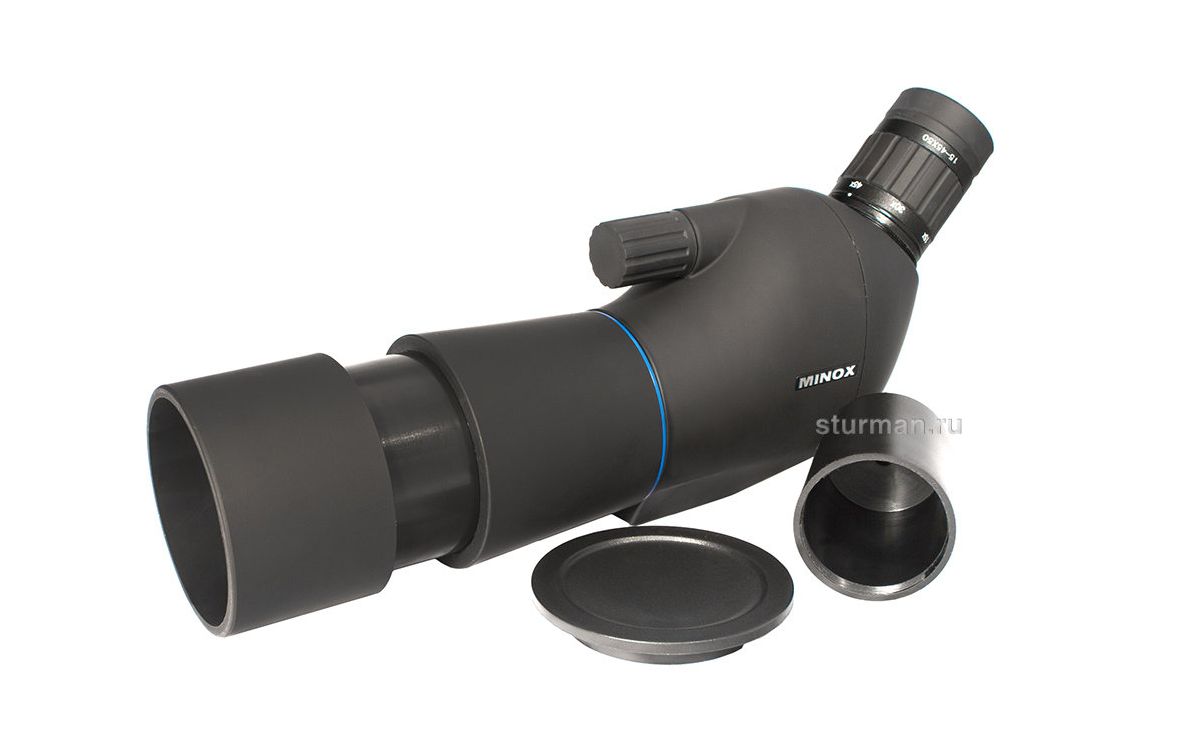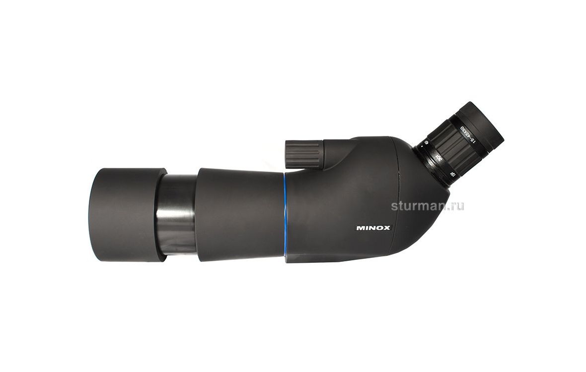 Зрительная труба средней мощности с несменным панкратическим окуляром MINOX BLU 15-45x50 подходит для наблюдений с рук или штатива (гнездо 1/4“). Излом оптической оси на 45° упрощает наблюдение за высоко расположенными объектами, вроде птицы на верхушке дерева. А ещё такую трубу можно установить ниже уровня глаз, в отличие от трубы с прямым окуляром.