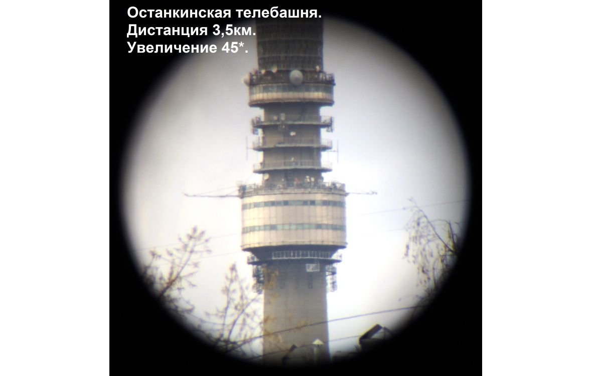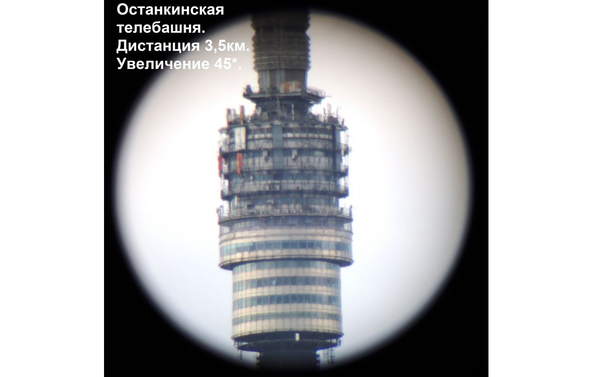 Для удобства наблюдения при перепадах высот, например, в горах, окуляр расположен к оптической оси под углом в 45 градусов.