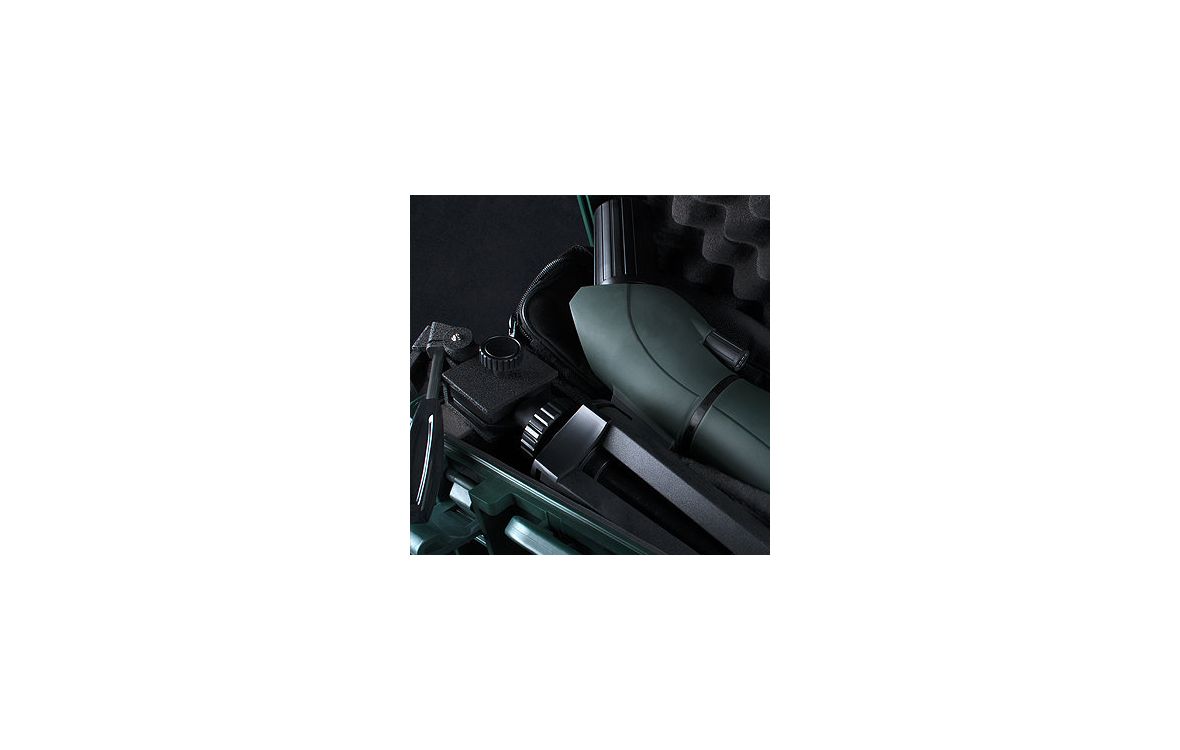Наблюдать можно стоя, сидя на стуле, не выходя из автомобиля, даже лёжа в укрытии. При этом не так важно, держите вы трубу в руках, закрепили на штативе или оконном стекле (в комплекте есть специальный крепёж). Расположенный под углом 45 град. окулярный узел упрощает наблюдения объектов выше уровня горизонта или ниже уровня глаз. Небольшая высота штатива поднимает трубу Vantage 20-60x60 над землёй или другой горизонтальной поверхностью всего на 0,5 метра. Труба вместе с мини-штативом убирается на хранение в крепкий пластиковый кейс. Для переноски в полевых условиях используется нейлоновый чехол, который можно не снимать и во время наблюдений. А встроенный в крышку объектива маленький компас поможет сориентироваться на местности.